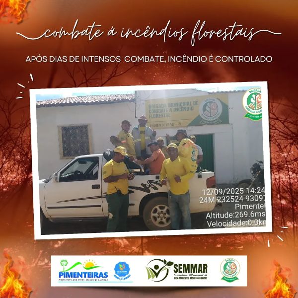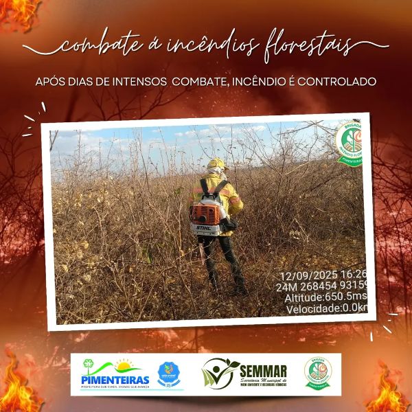 Data: 23/09/2025O incêndio florestal que teve início na localidade Pedra Furada, zona rural do município de Pimenteiras, foi controlado nesta quarta-feira, 17 de setembro, após sete dias de intenso combate.