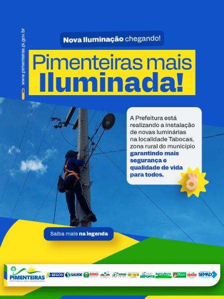 A Prefeitura de Pimenteiras segue investindo em melhorias na zona rural. Desta vez, a localidade Tabocas recebeu novas luminárias, garantindo ruas mais seguras e bem iluminadas para todos os moradores.