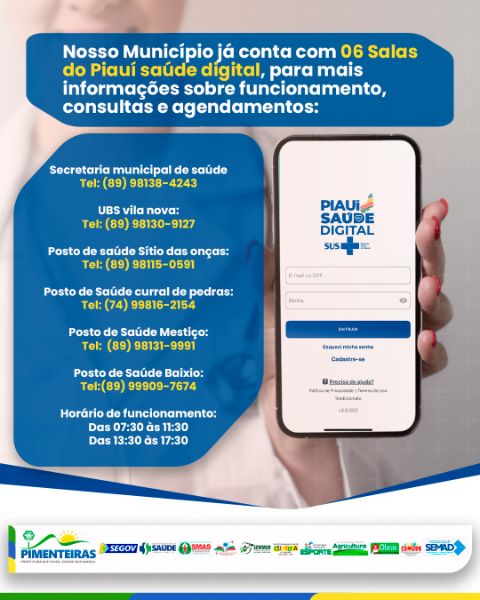 Data: 16/10/2025Nosso município segue avançando na saúde! Agora contamos com 06 salas do Piauí Saúde Digital, garantindo mais agilidade e facilidade nos atendimentos.