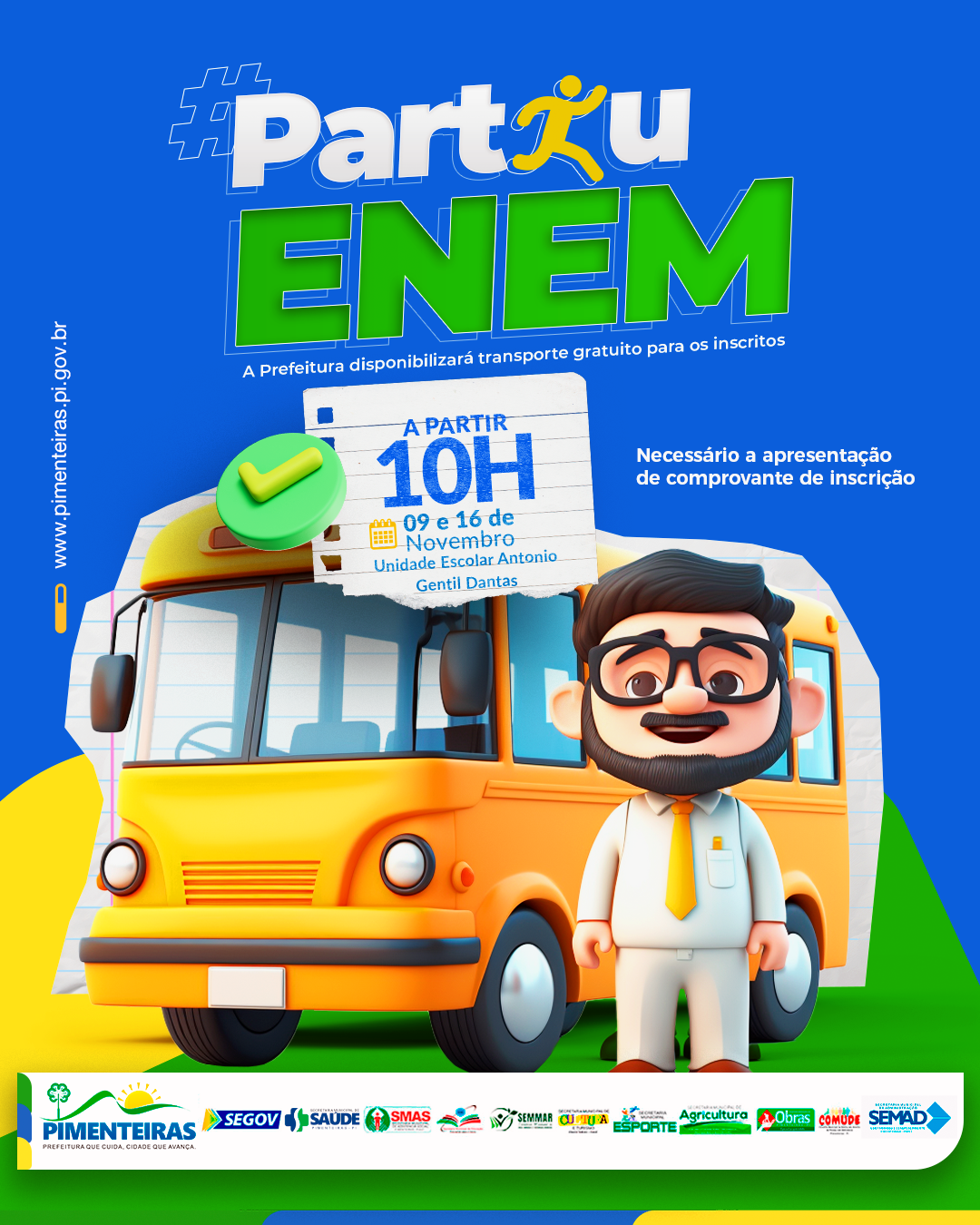 Data: 07/11/2025A Prefeitura de Pimenteiras está garantindo transporte gratuito para os estudantes inscritos no ENEM.