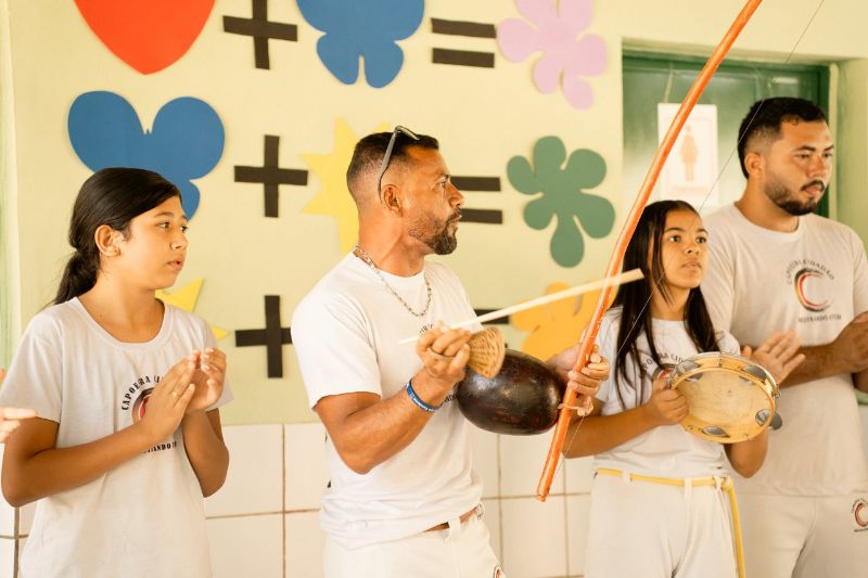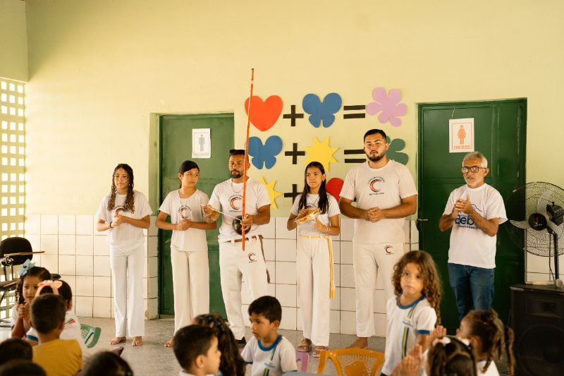 Crianças e educadores participaram de uma manhã divertida, com brincadeiras lúdicas, apresentações culturais, música e muita interação, fortalecendo os laços comunitários e celebrando o cuidado e a convivência na formação dos pequenos.