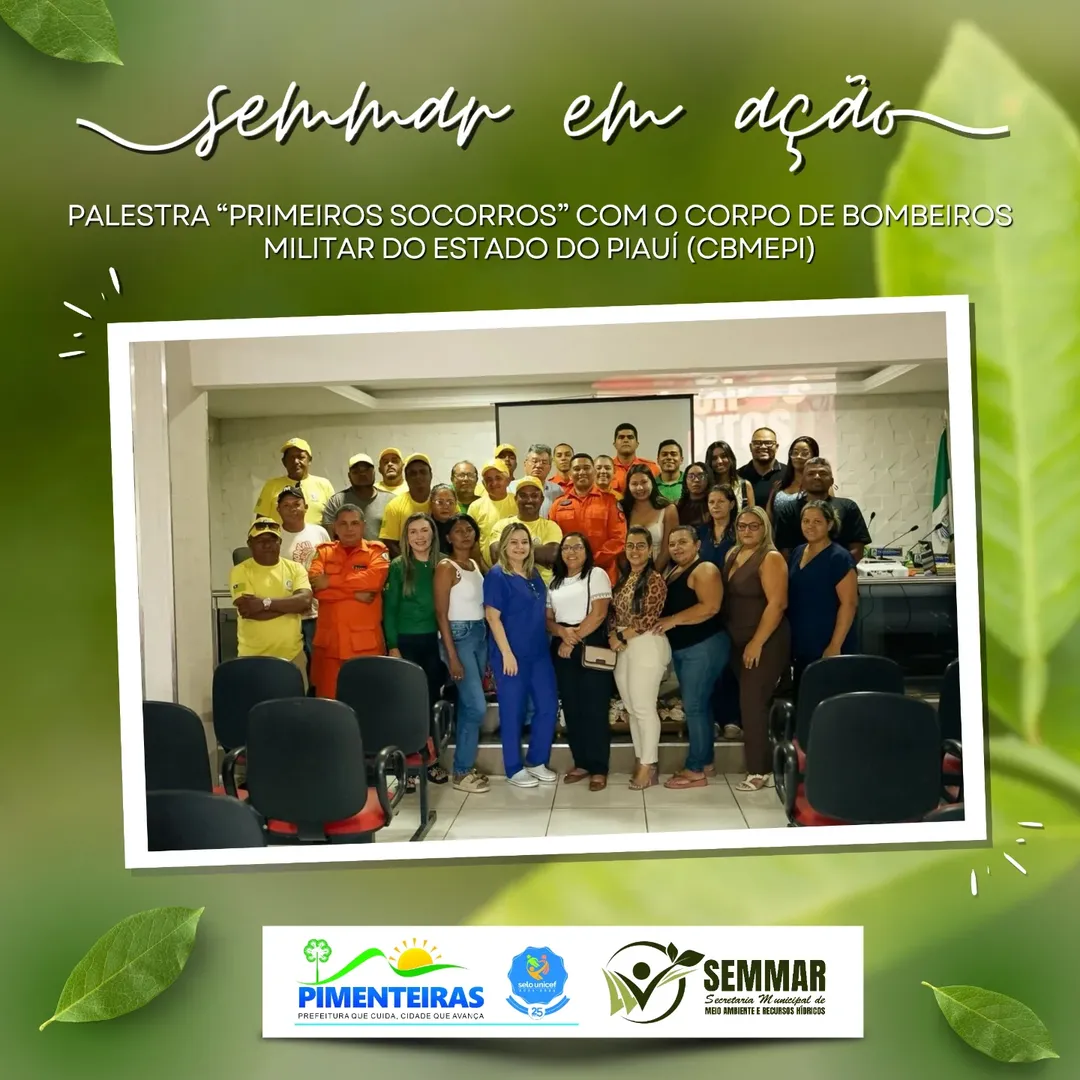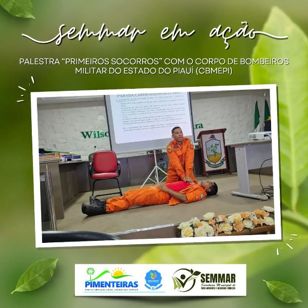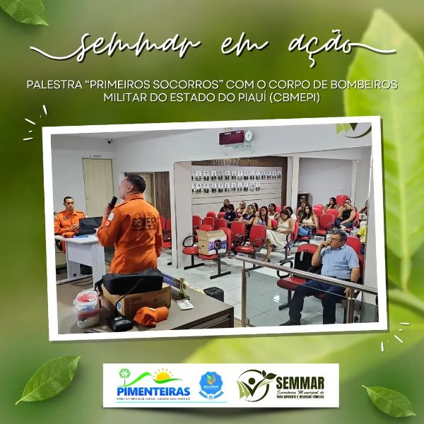 Data: 02/12/2025A Prefeitura Municipal de Pimenteiras, por meio da Secretaria Municipal de Meio Ambiente e Recursos Hídricos (SEMMAR), em parceria com a Brigada Florestal Municipal e a Secretaria Municipal de Saúde, realizou a palestra “Primeiros Socorros”, ministrada pelo Corpo de Bombeiros Militar do Estado do Piauí – CBMEPI. A ação trouxe orientações essenciais para a atuação segura dos brigadistas e profissionais da saúde em situações de emergência.