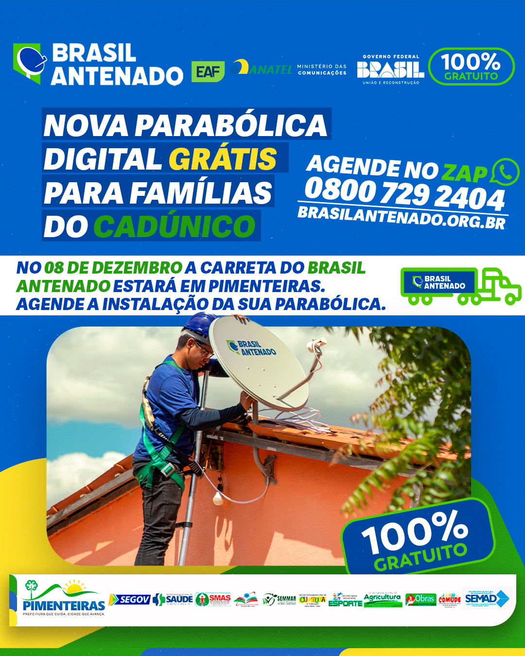Data: 10/12/2025No dia 08 de dezembro, as famílias inscritas no CadÚnico poderão garantir a nova parabólica digital de forma totalmente gratuita.