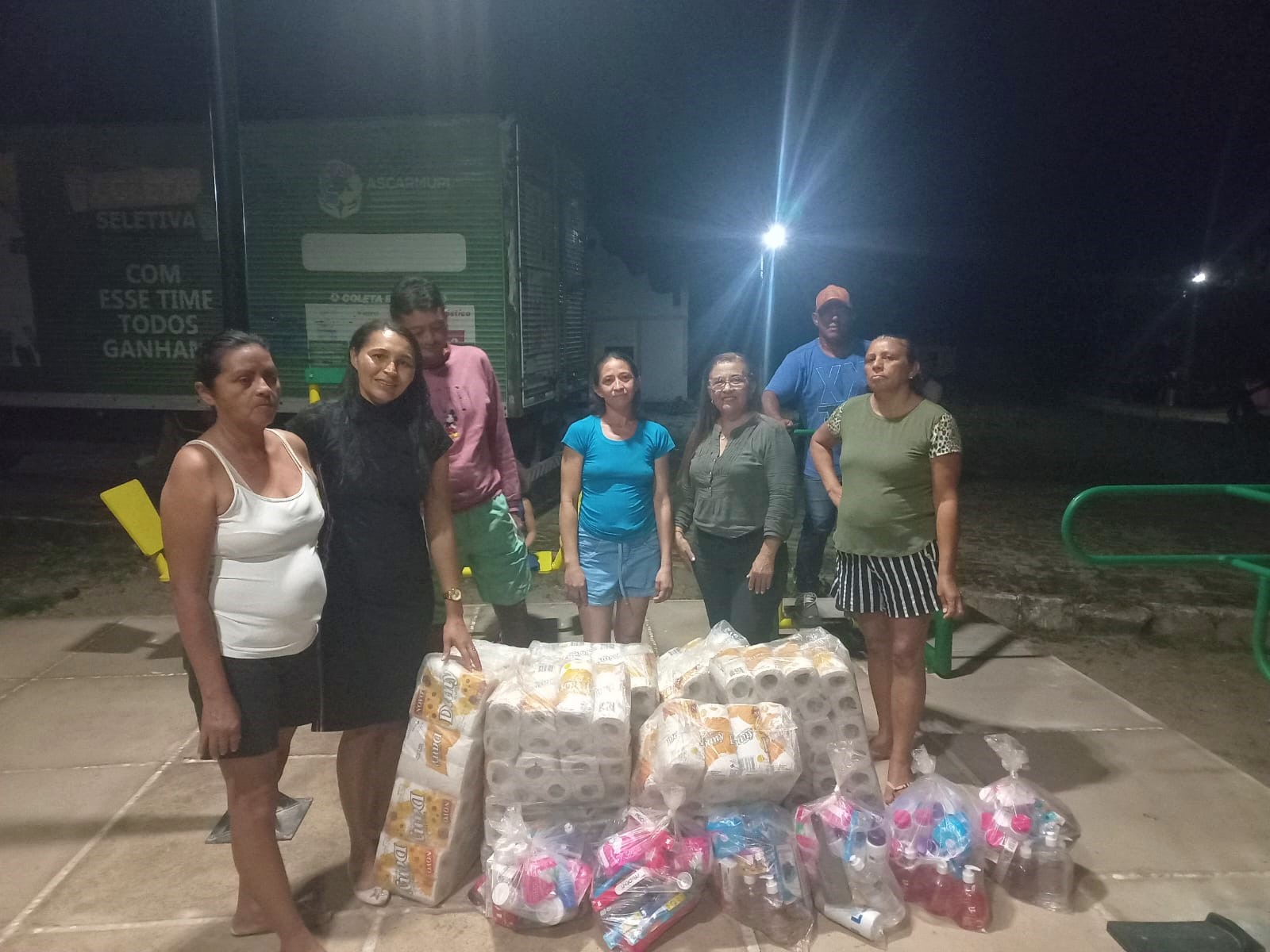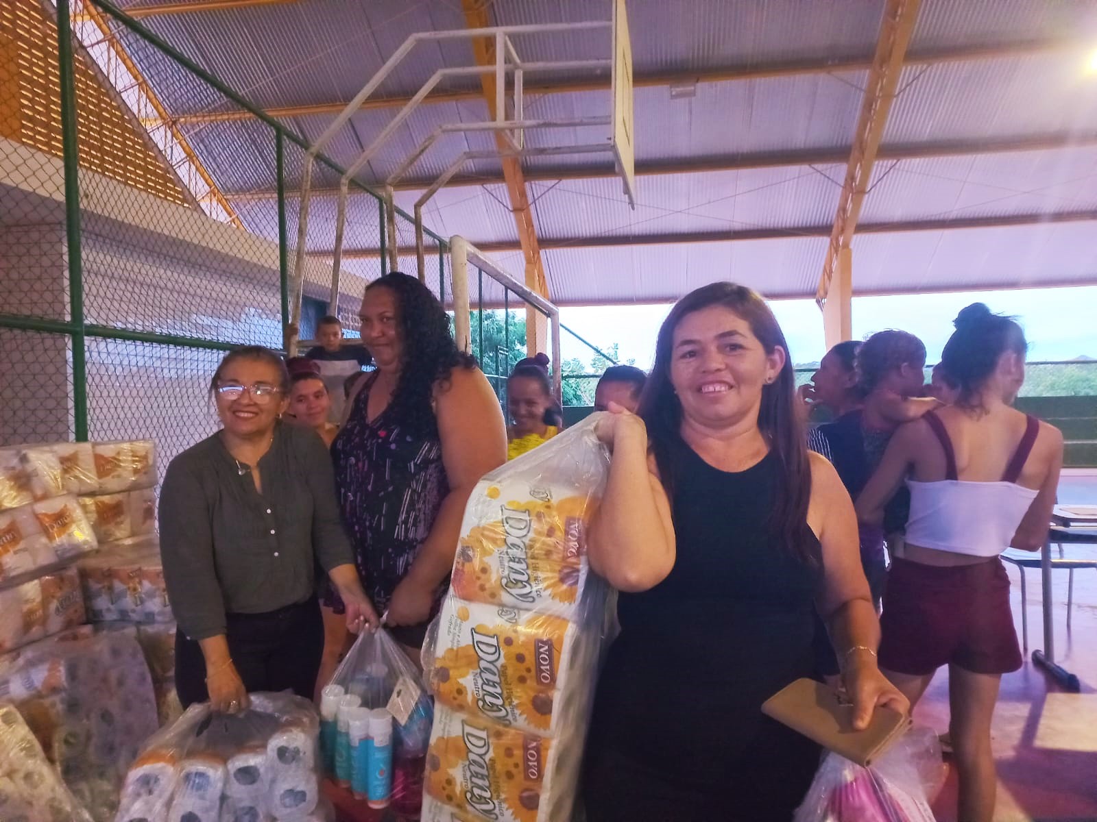 O kit é composto por itens básico de higiene pessoal e de utilidade diária: papeis higiênicos, shampoos, condicionadores, álcool gel, sabonetes líquidos, creme dental, absorventes femininos e outros.