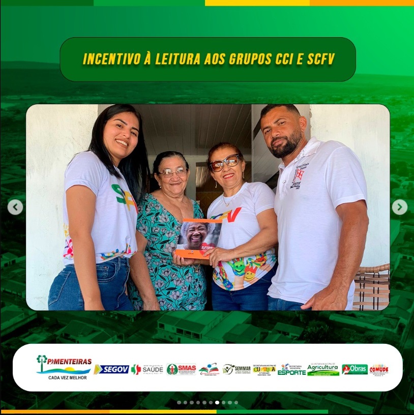 Data: 24/04/2023Em mais uma ação da Prefeitura Municipal de Pimenteiras, através da Secretaria de Assistência Social com os seus Serviço de Convivência e Fortalecimento de Vínculo (SCFV) e Centro de Convivência dos Idosos (CCI), nesta segunda-feira 24 de abril foi realizada a entrega de livros a crianças assistidas pelo SCFV e ao grupo da melhor idade do CCI.