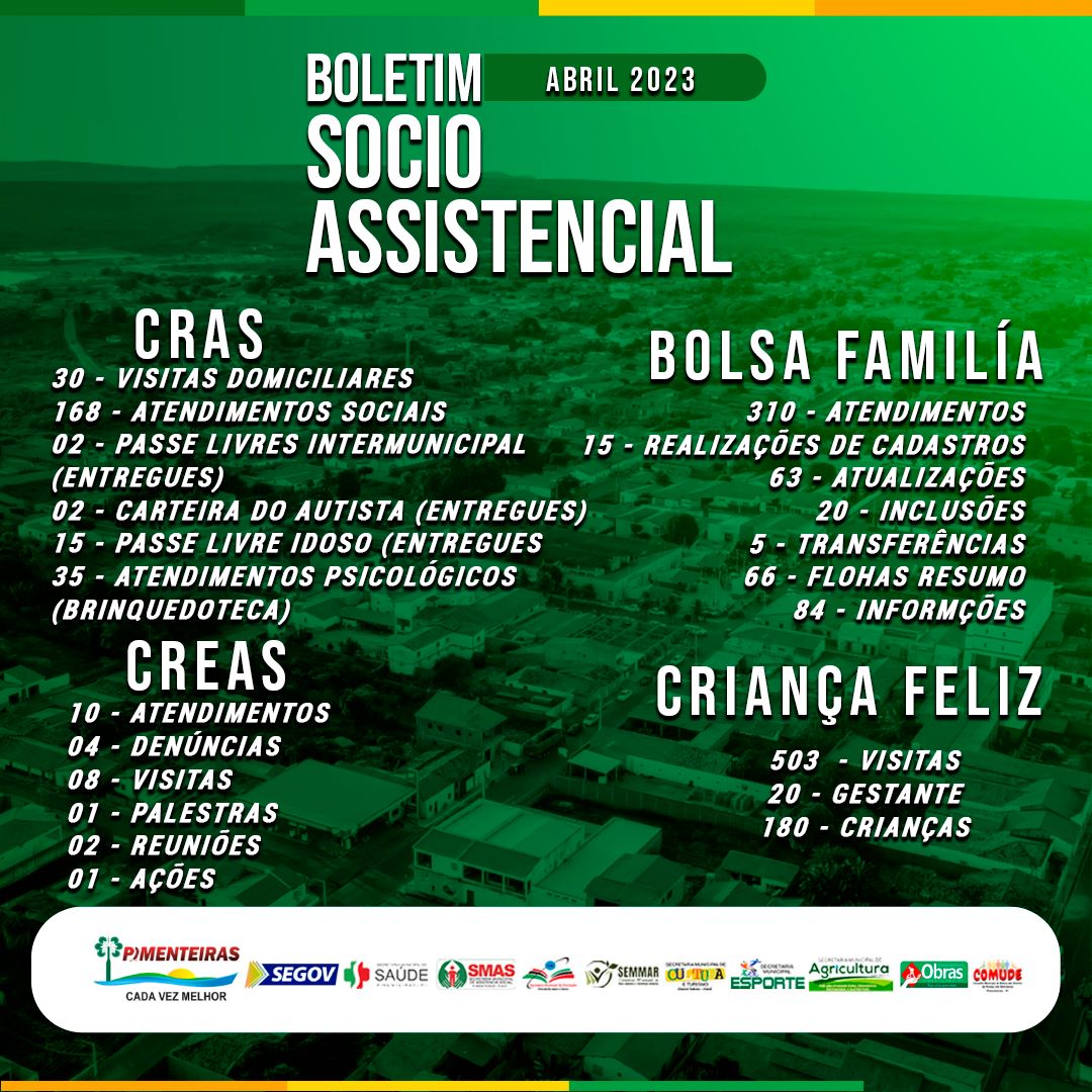 Boletim Socioassistencial referente ao mês de Abril de 2023.