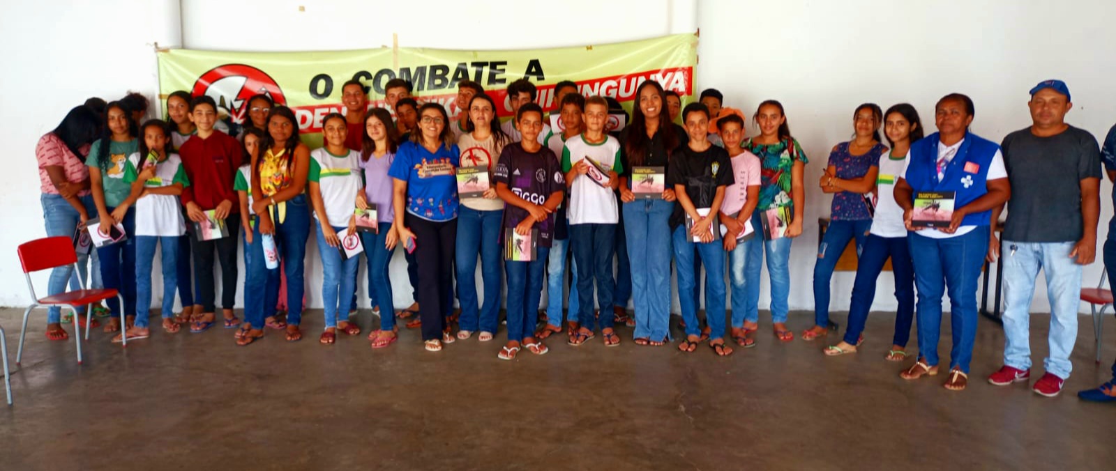 A equipe de endemias da Vigilância Sanitária de Pimenteiras, com os agentes de saúde Iracema e Antônio Paula, a professora Luena, estiveram no Educandário fazendo uma palestra a respeito do mosquito aedes aegypti, transmissor da dengue, zica e chikungunya. "Quero agradecer a direção da escola, a Aldina, e a todos os alunos e aos professores, que estão nessa luta pra combater o mosquito", disse a coordenadora da Vigilância municipal, Claudiana Luiza.