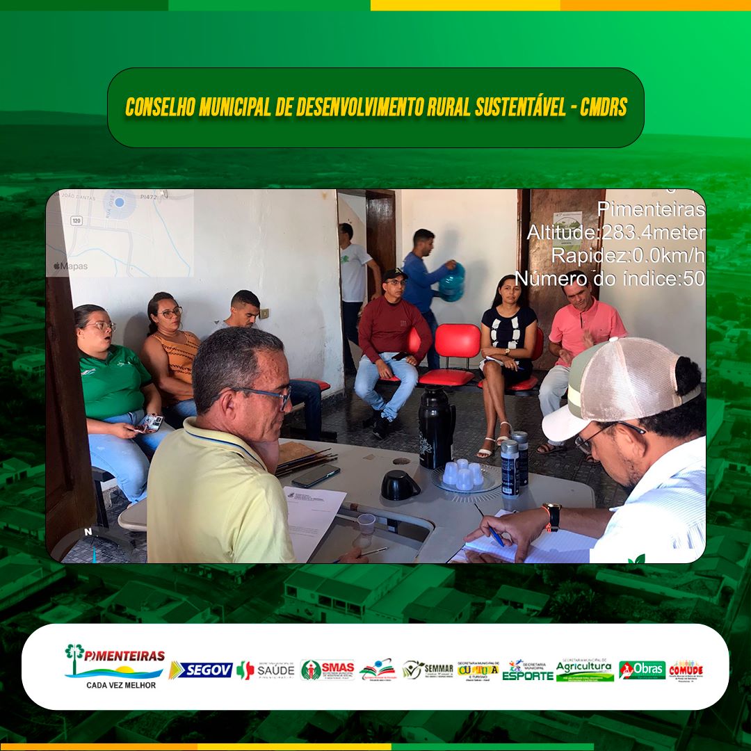 Data: 11/05/2023A Prefeitura Municipal de Pimenteiras, através da Secretaria de Agricultura, realizou reunião nesta quarta-feira (10/05), para renovar o Conselho Municipal de Desenvolvimento Rural Sustentável - CMDRS - do mandato referente a gestão de 10/05/2023 a 10/05/2025.