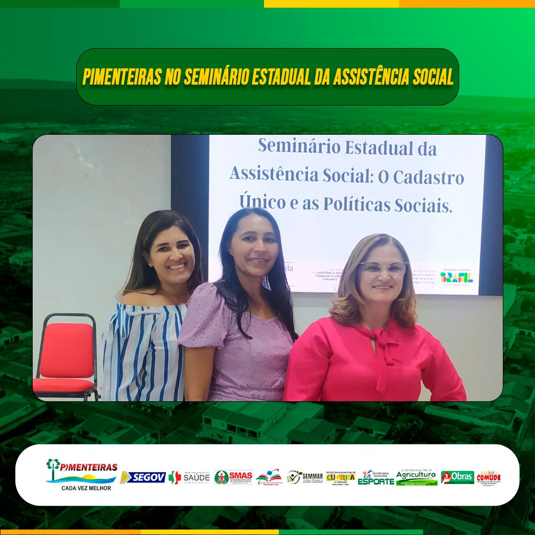 Data: 16/05/2023A Secretaria Municipal de Assistência Social, da Prefeitura de Pimenteiras, participou nos dias 11 e 12/05 do Seminário Estadual da Assistência Social : o cadastro único e as políticas sociais.