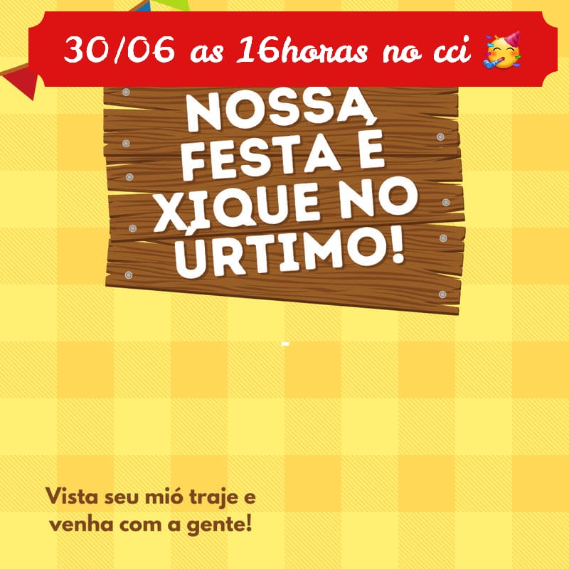 Data: 29/06/2023A Prefeitura Municipal de Pimenteiras, através do seu Centro de Referência da Assistência Social (CRAS) pelo SCFV, convida a Festa Junina a ser realizada amanhã (30/06), às 16h00, no CCI.