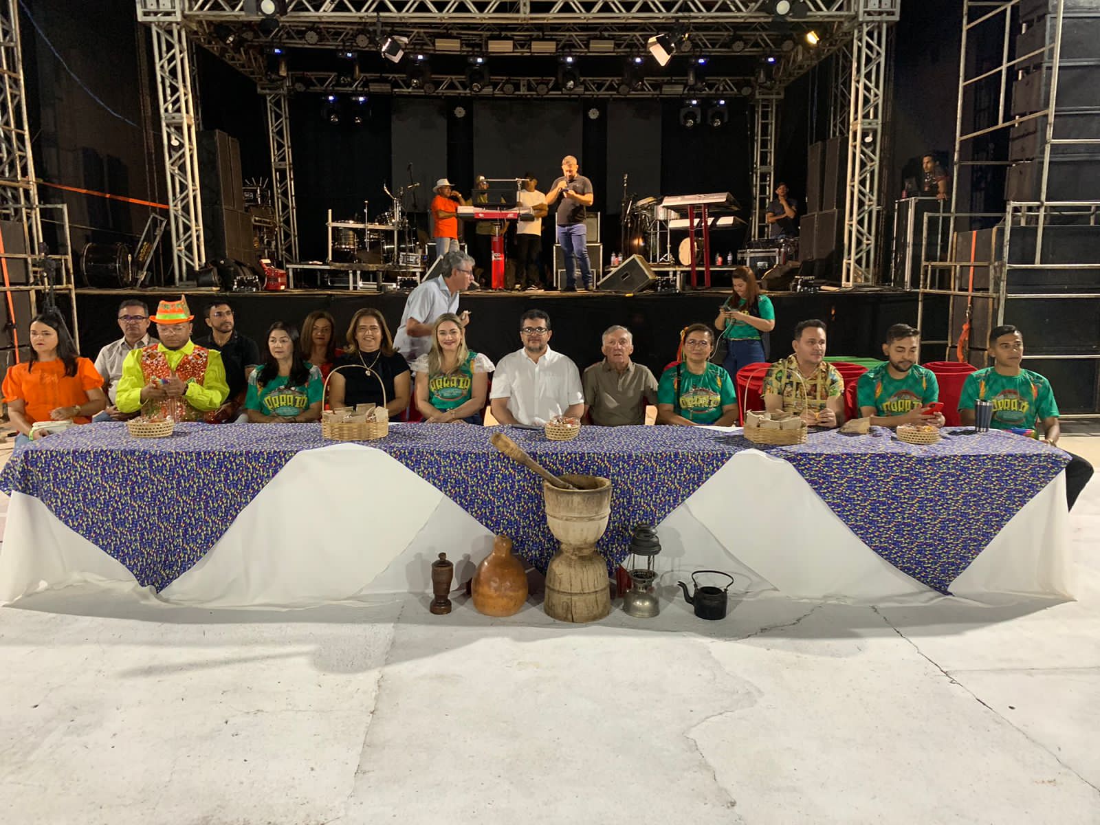 Estiveram presentes, na mesa de honra, várias autoridades locais e do estado, como o secretário de Cultura do Estado, Carlos Anchieta, Dra Ingrid Persi, coordenadora da Lei Paulo Gustavo, a prefeita Lúcia Lacerda e seu esposo Chico Bezerra, seu assessor Venicio do Ó e esposa Carmelina, secretários de Governo Alex Lacerda , de Cultura Maria Noeme, de Saúde Maria Socorro, de Meio Ambiente Flávio Francisco, de Esportes Joaquim Soares (Neto), vereadora Janaína Lacerda e Gean Lucas, coordenadora da Vigilância Sanitária Claudiana Silva e o organizador da Quadrilha Beija-Flor Lucas.