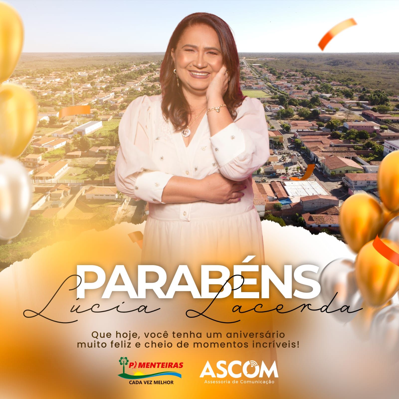 Data: 15/09/2023A Prefeitura Municipal de Pimenteiras, por meio de toda a gestão e seus funcionários, presta homenagem à gestora do município Lúcia Lacerda pela passagem do seu aniversário neste dia 15 de setembro de 2023.