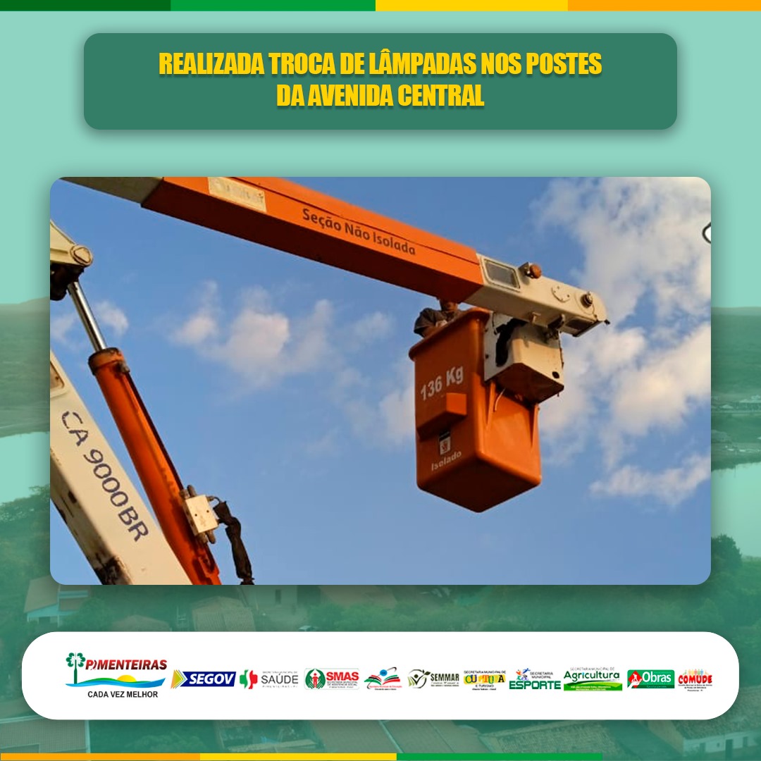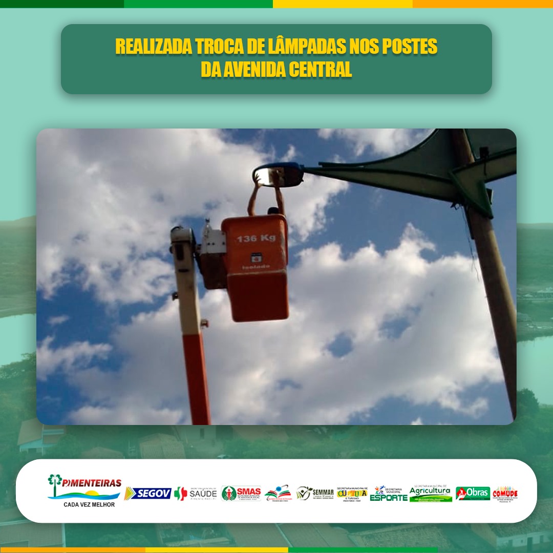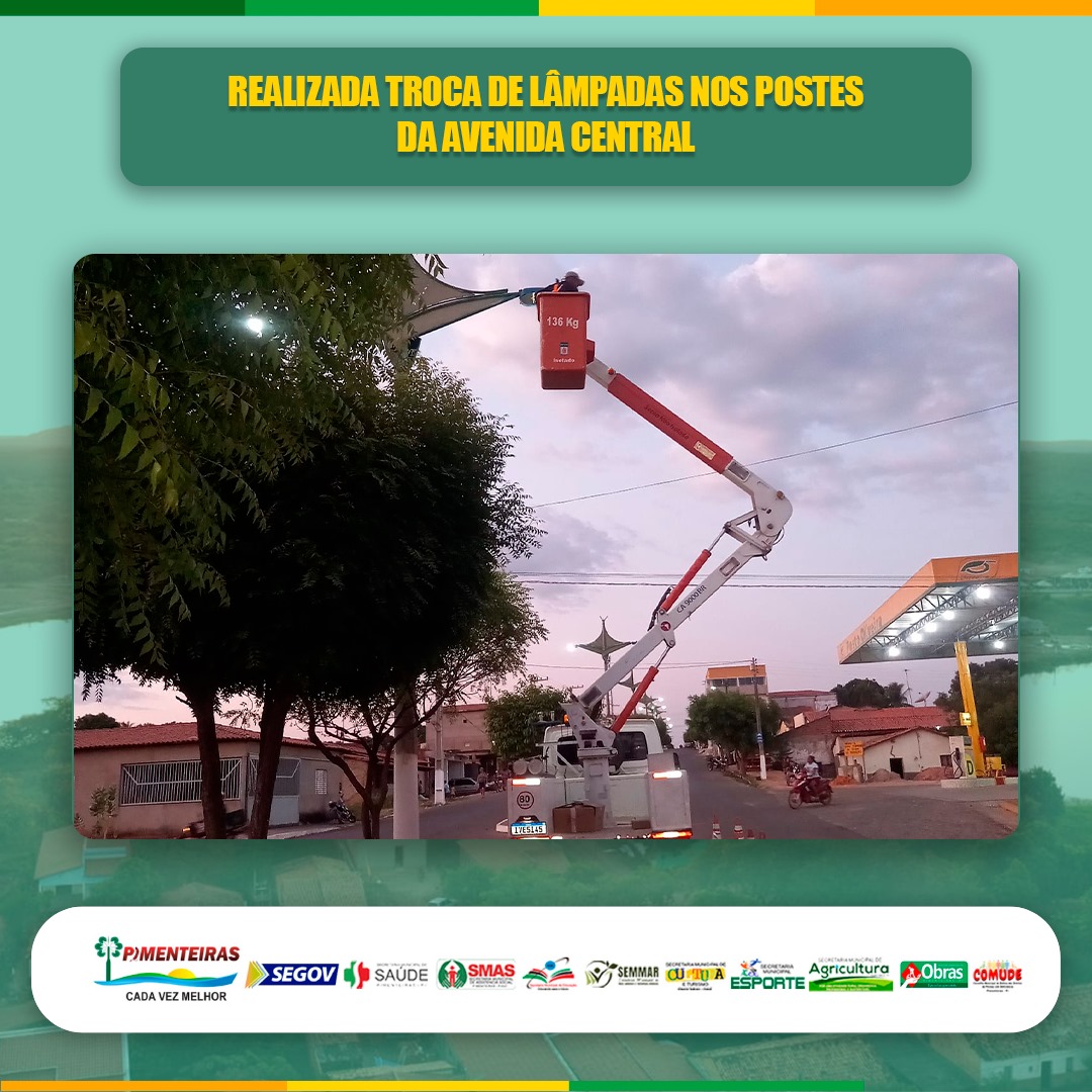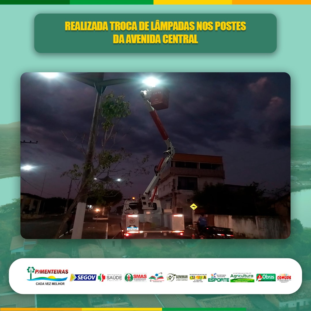 Data: 17/09/2023A Prefeitura Municipal de Pimenteiras, através da sua Secretaria de Obras, tem o prazer de informar a manutenção e troca das lâmpadas nos postes da Avenida José Pereira Nogueira.