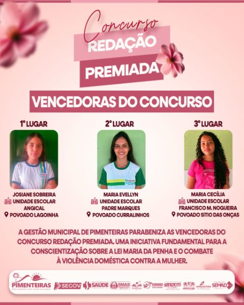 Parabéns às vencedoras e a todos que participaram desse concurso tão especial.
