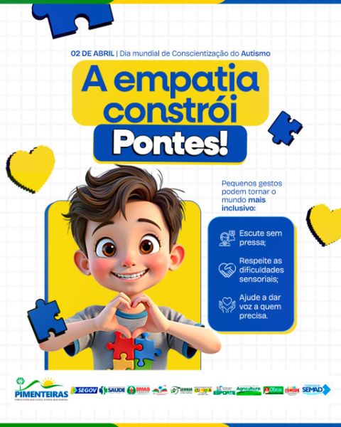 Hoje é o Dia Mundial de Conscientização do Autismo! A empatia constrói pontes e torna o mundo mais inclusivo.