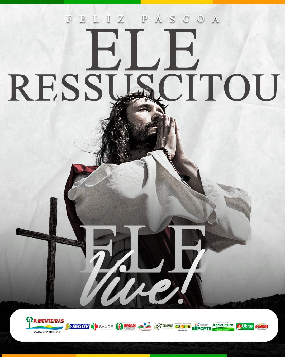 A Prefeitura de Pimenteiras deseja a todos um feliz e abençoado feriado da Páscoa, repleto de paz, amor e união em família. Que a luz da ressurreição de Jesus Cristo brilhe sobre todos nós e nos conduza a um futuro mais próspero e justo para nossa cidade e nosso povo.