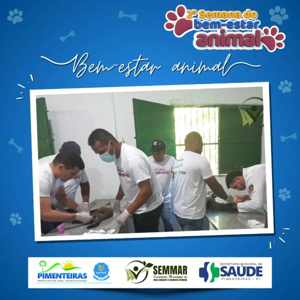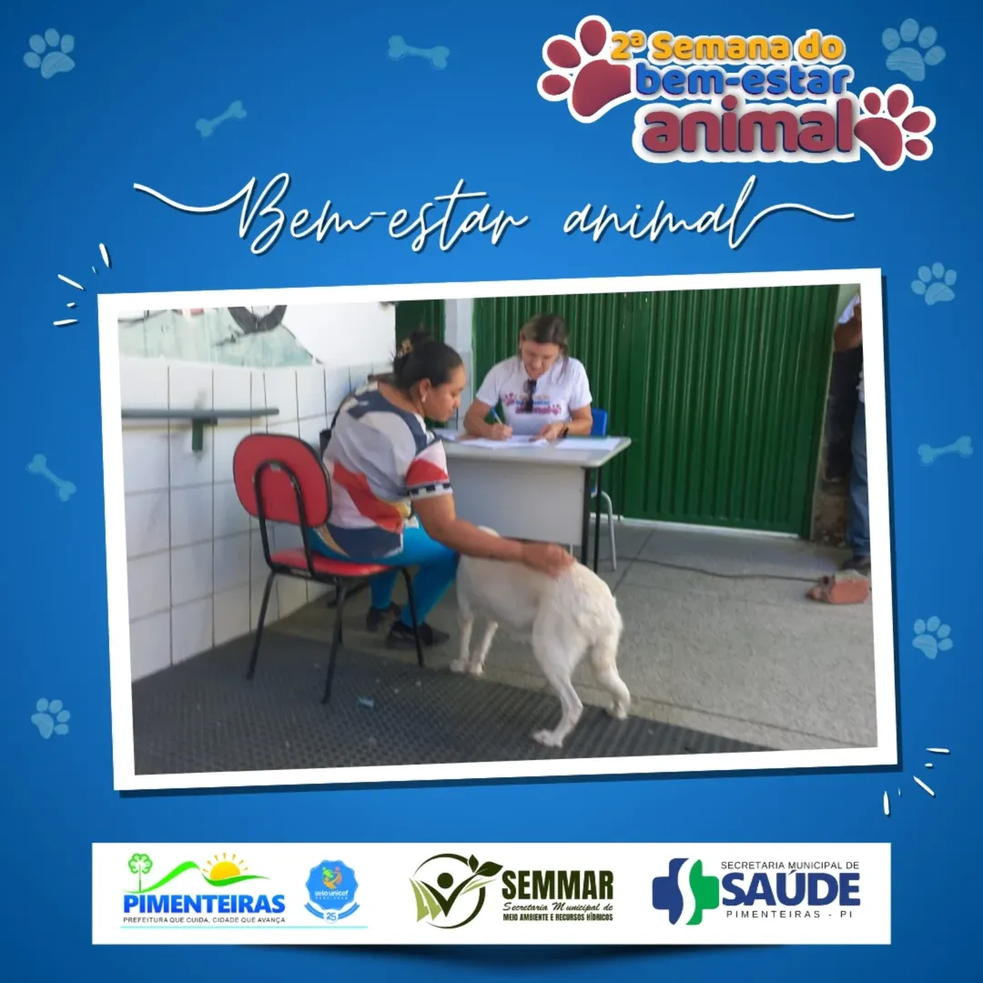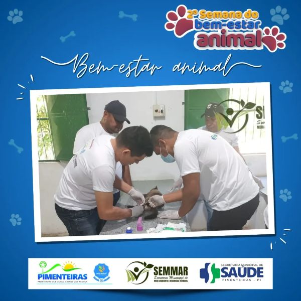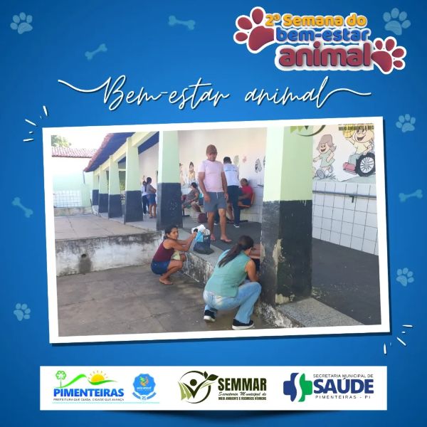 Data: 15/05/2025Nesta quarta-feira, 14 de maio, a Prefeitura Municipal de Pimenteiras deu continuidade à 2ª Semana do Bem-Estar Animal com mais um dia de atenção e cuidado aos animais do nosso município.