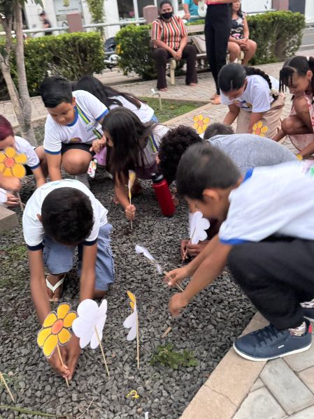 O evento aconteceu na Praça Pedro Alexandrino Nogueira e contou com a presença dos conselheiros tutelares de Pimenteiras, assistentes sociais, representantes da rede municipal de educação, equipe do SCFV e famílias da comunidade. A programação incluiu apresentações culturais das crianças, palestra sobre as Redes de Proteção, atividades lúdicas e o emocionante plantio simbólico de girassóis, gesto que representa o cuidado e a esperança de um futuro mais seguro para nossas crianças.