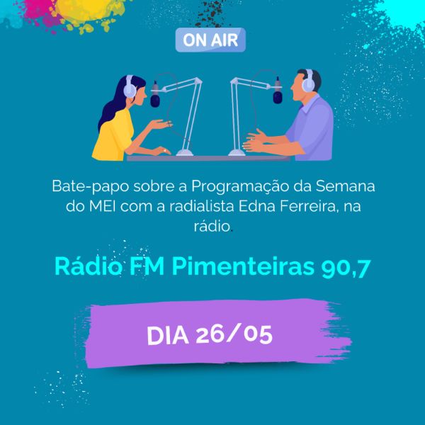 Dia 26/05 Bate-papo sobre a Programação da Semana do MEI com a radialista Edna Ferreira, na rádio FM Pimenteiras 90,7