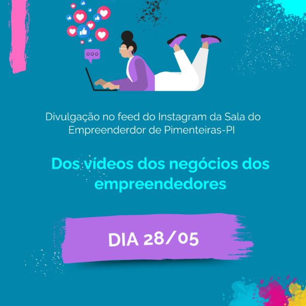 Dia 28/05 Divulgação no feed do Instagram da Sala do Empreendedor de Pimenteiras-PI dos vídeos dos negócios de empreendedores convidados