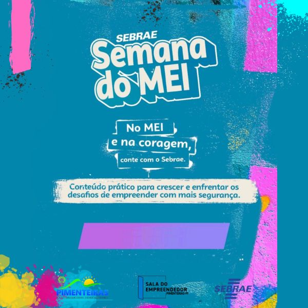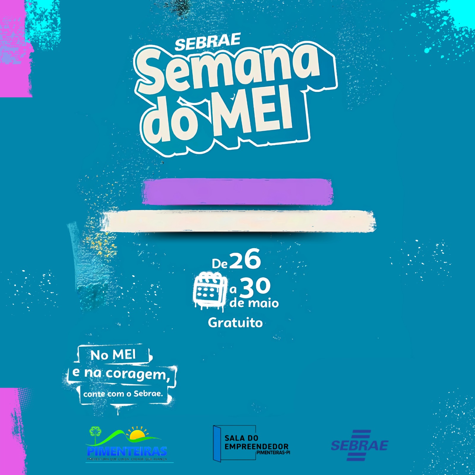 Data: 23/05/2025Pela primeira vez, o município de Pimenteiras vai receber a Semana do MEI (Micro Empreendedor Individual), que acontecerá de 26 a 30 de maio com inúmeras atividades para desenvolver e fomentar o empreendedorismo na cidade, com incentivo da Prefeitura e apoio do Sebrae. Com o tema deste ano: "No MEI e na coragem, conte com o Sebrae", a Semana do MEI está sendo realizada em todo o Brasil no mês de maio, nas cidades sede do SEBRAE e municípios que possuem Sala do Empreendedor, como em Pimenteiras-PI.