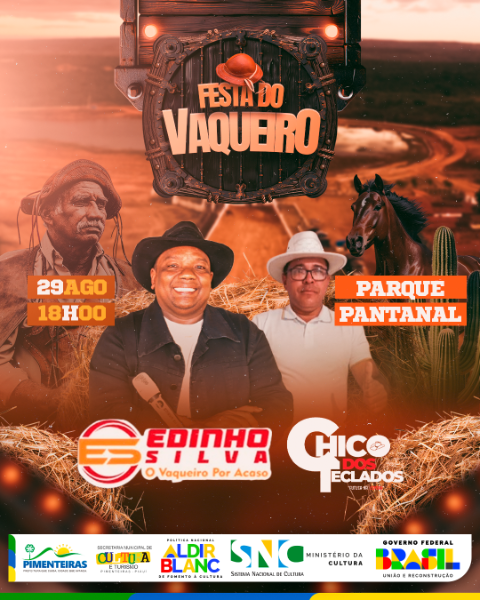 Data: 14/08/2025Prepare o chapéu, porque vem aí a tradicional Festa do Vaqueiro em Pimenteiras! No dia 29 de agosto, o Parque Pantanal será palco de muita emoção, cultura e música.