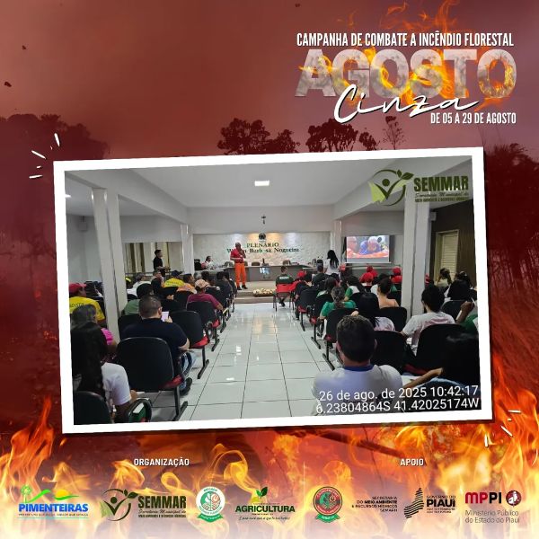 Data: 27/08/2025Na manhã desta terça-feira (26/08), Pimenteiras realizou o I Fórum Municipal de Prevenção e Combate a Incêndios Florestais, integrando a programação da campanha Agosto Cinza.