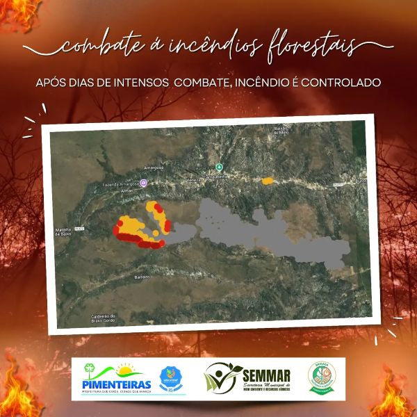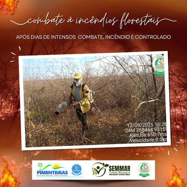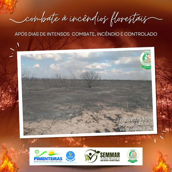 Data: 23/09/2025O incêndio florestal que teve início na localidade Pedra Furada, zona rural do município de Pimenteiras, foi controlado nesta quarta-feira, 17 de setembro, após sete dias de intenso combate.