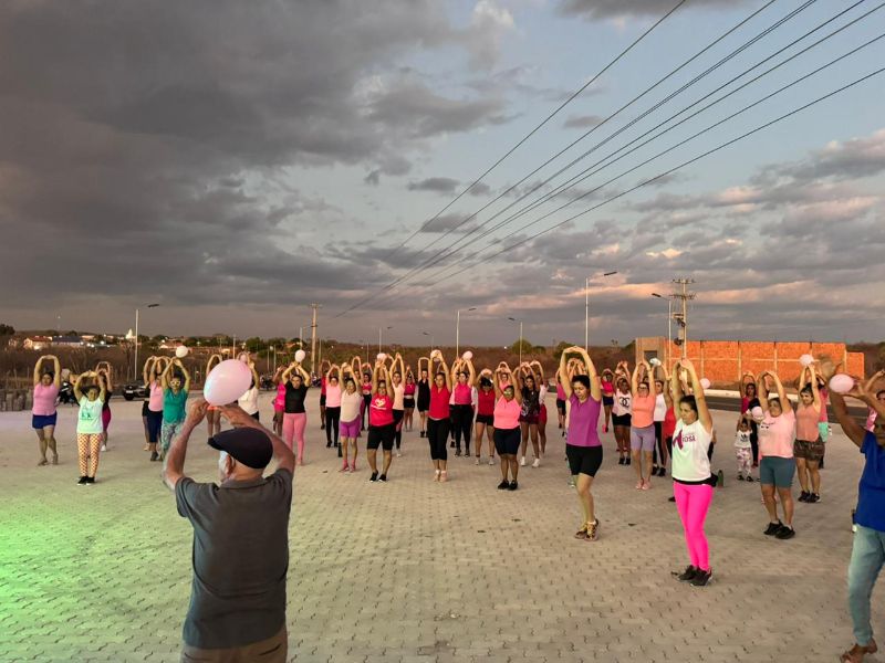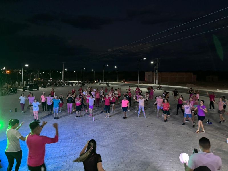 Além da conscientização e prevenção ao câncer de mama, tivemos muita animação com a aula de ritmo e dança com o professor Vitor Cacau.