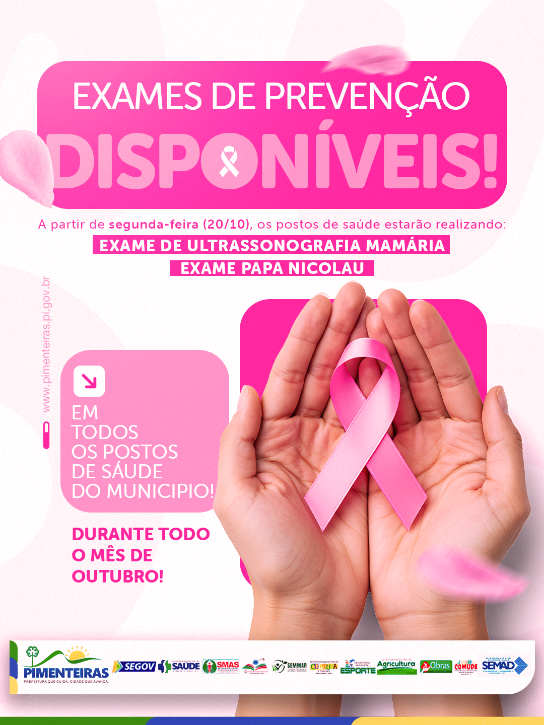 A ação acontecerá em todos os postos de saúde do município durante todo o mês de outubro, reforçando a importância da prevenção e do cuidado com a saúde da mulher.