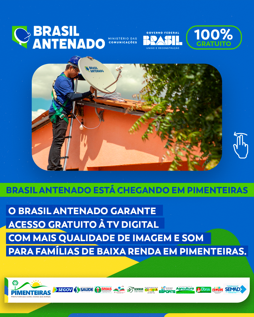 Data: 26/11/2025O programa Brasil Antenado já está em Pimenteiras, garantindo acesso gratuito à TV digital para famílias de baixa renda do município, com mais qualidade de imagem e som.