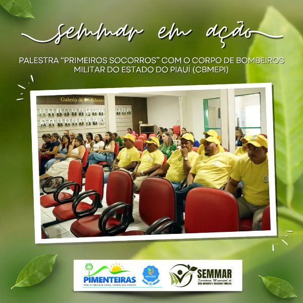 Data: 02/12/2025A Prefeitura Municipal de Pimenteiras, por meio da Secretaria Municipal de Meio Ambiente e Recursos Hídricos (SEMMAR), em parceria com a Brigada Florestal Municipal e a Secretaria Municipal de Saúde, realizou a palestra “Primeiros Socorros”, ministrada pelo Corpo de Bombeiros Militar do Estado do Piauí – CBMEPI. A ação trouxe orientações essenciais para a atuação segura dos brigadistas e profissionais da saúde em situações de emergência.