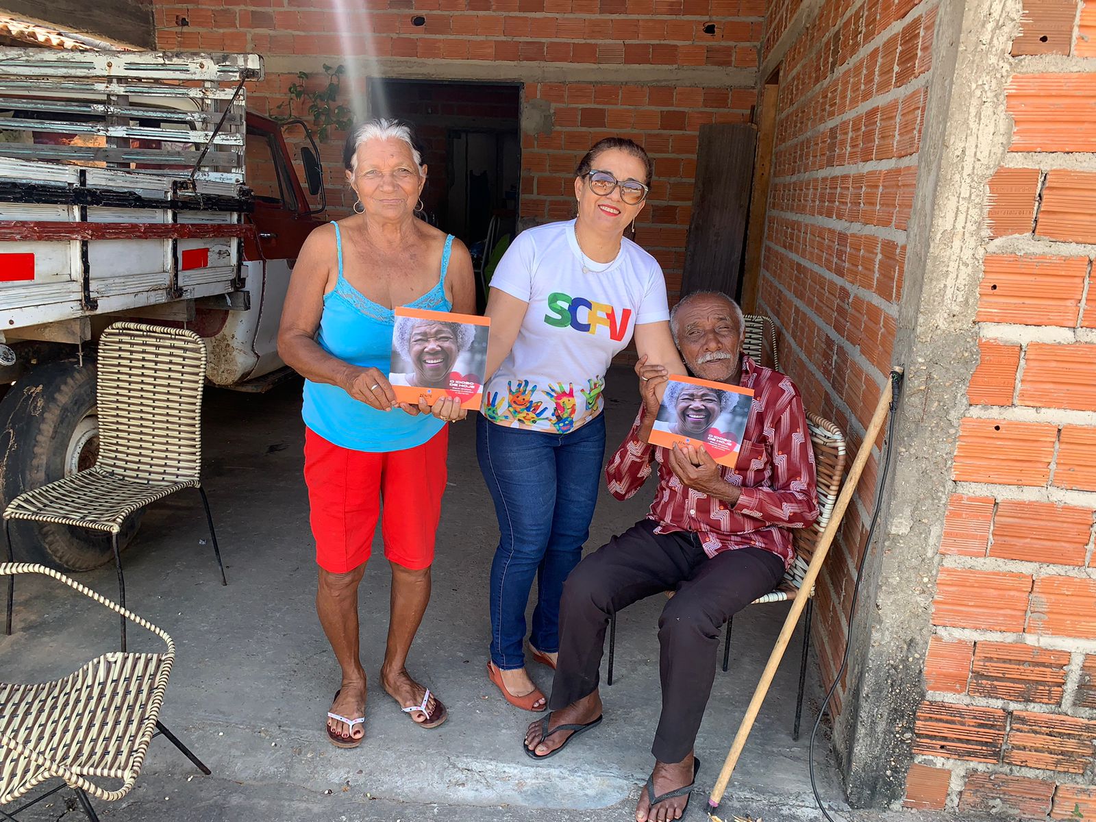 Os orientadores sociais Catuaba, Gilvania e Socorro fizeram a distribuição e puderam participar da alegria deste público em receber presentes valiosos por sua mágica de fazer o leitor viajar durante a leitura de um livro. Para a orientadora do CCI, Socorro de Maria, é muito engrandecedor participar desse tipo de ação. "Participo sempre das ações com os idosos e pra mim é uma grande alegria visitá-los ou assistí-los com essas ações sociais da gestão municipal", disse Socorro.