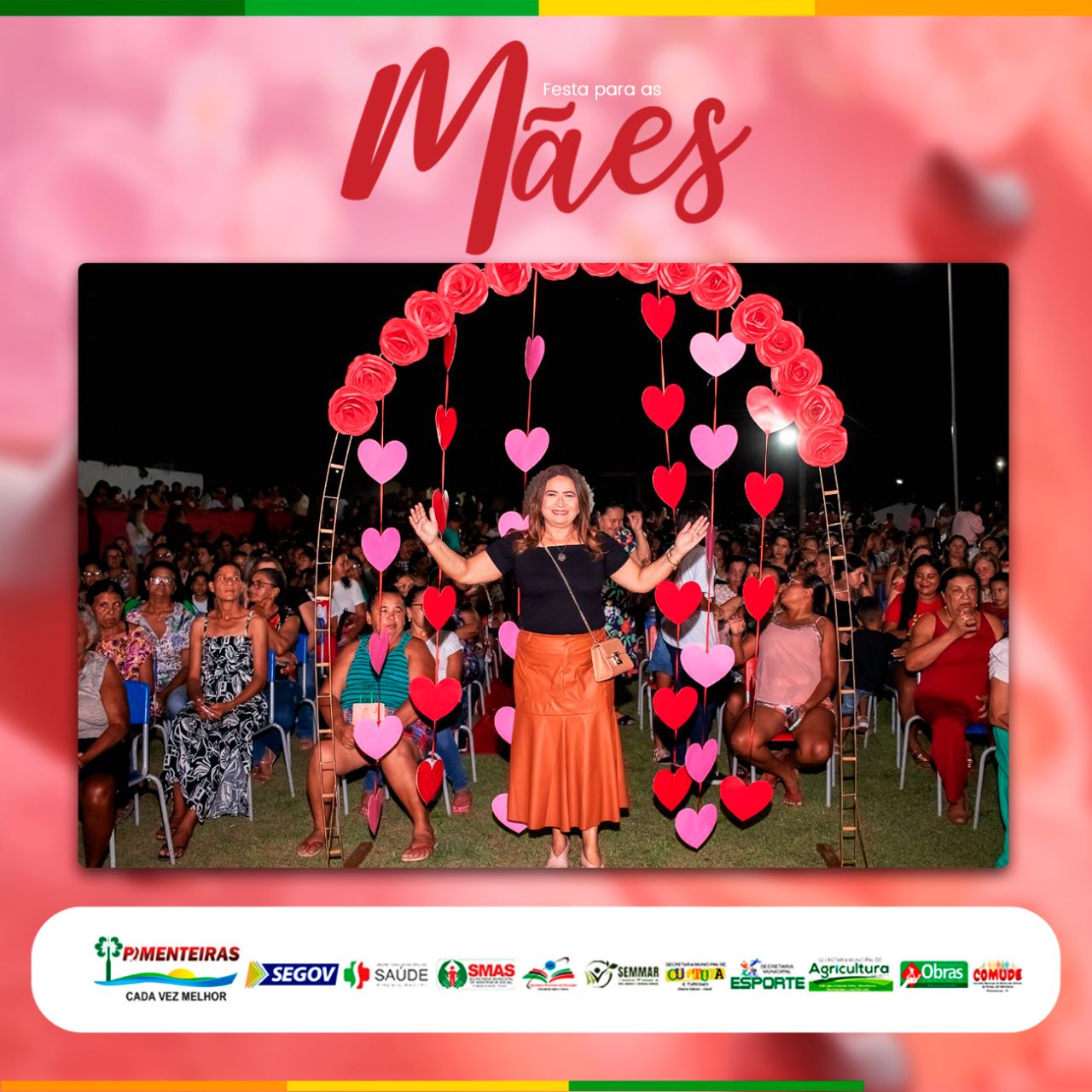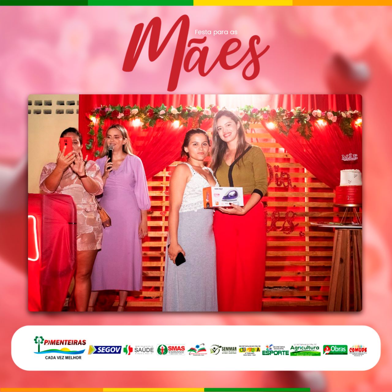 Data: 14/05/2023A Prefeitura Municipal de Pimenteiras, através de sua Secretaria de Assistência Social, realizou neste sábado (13/05), uma grande festa em homenagem às mães, com uma lindíssima decoração, sorteio de muitos prêmios, lembranças, com a presença da gestora municipal Lúcia Lacerda, seu vice Rogério Caetano, secretários, vereadores, jornalistas e um grande público presente.