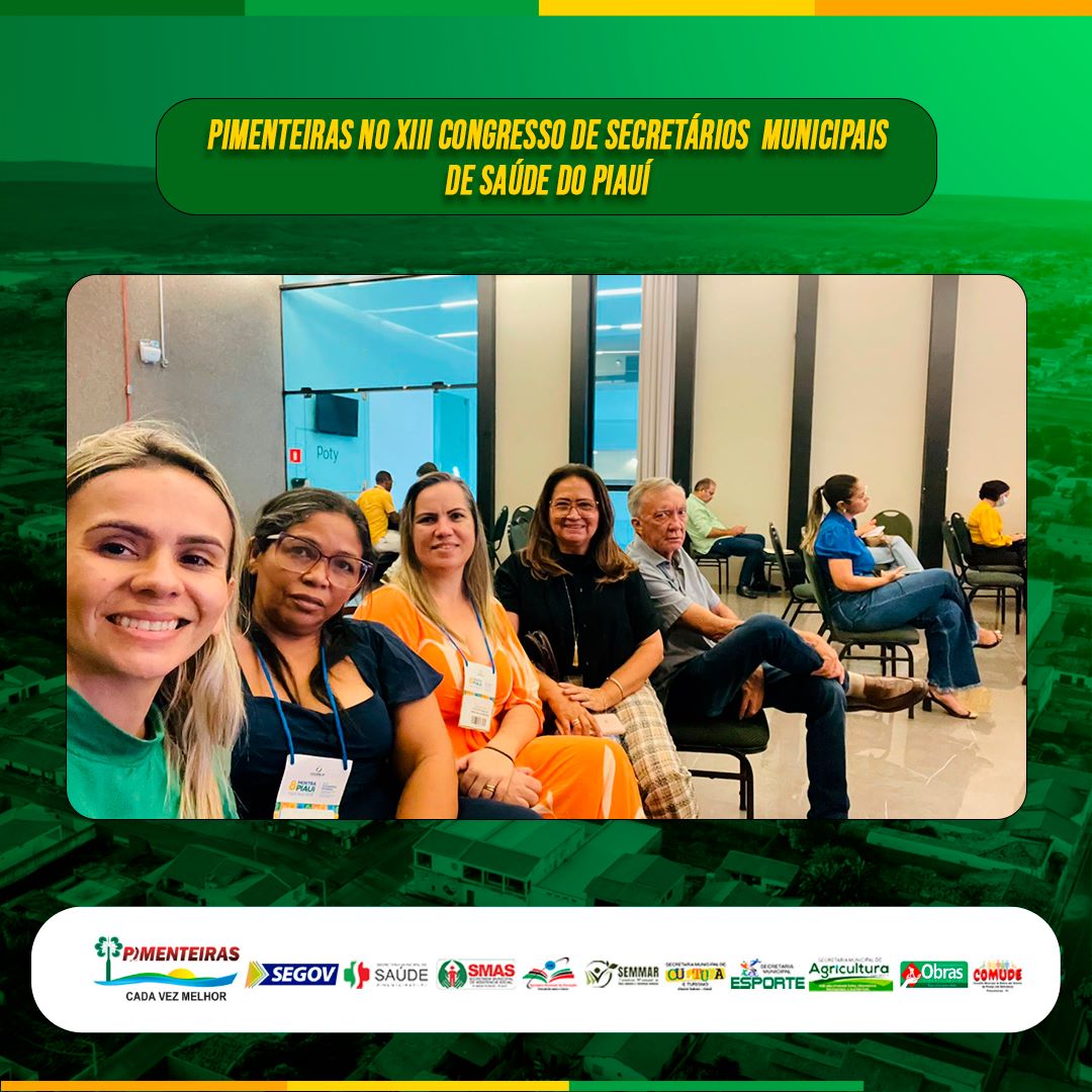 Data: 18/05/2023Nestas terça e quarta-feira (16 e 17/05), a Prefeitura Municipal de Pimenteiras, junto com a Secretaria de Saúde, estiveram no XIII Congresso de Secretários Municipais de Saúde do Piauí, com o tema: "Desafios do SUS na Busca da Equidade Regional no Estado do Piauí ".
