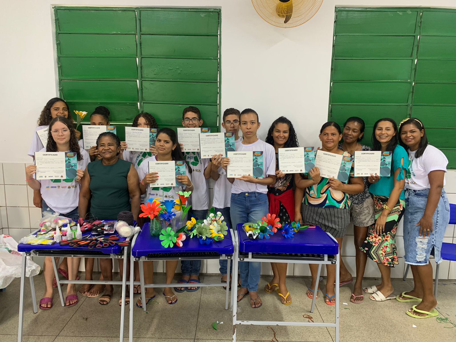 Foram distribuídos material didático, camisas das oficinas, bolsas do Programa Avança Pimenteiras e lanches entre as atividades realizadas e ao final das oficinas foram entregues os certificados.