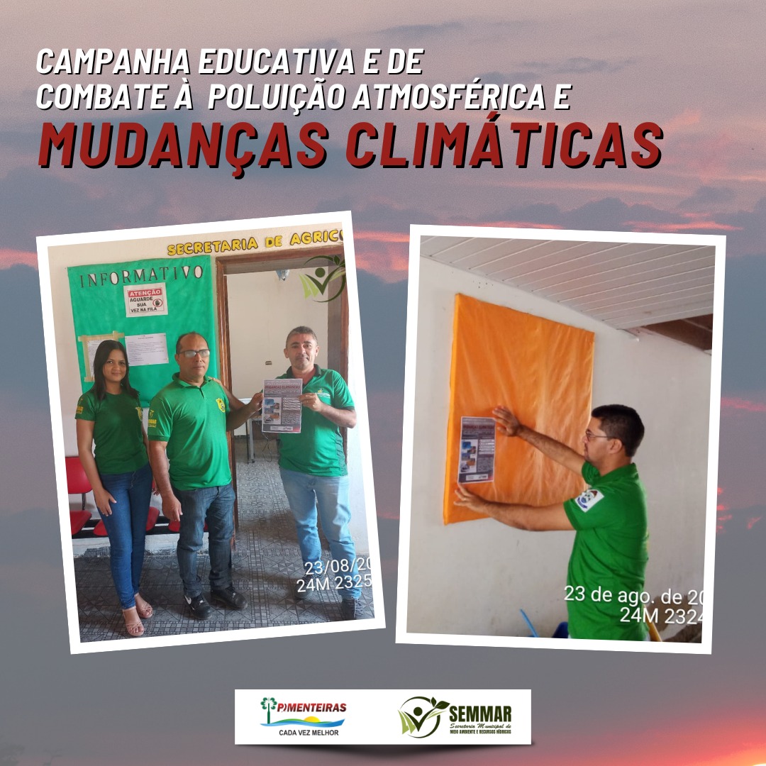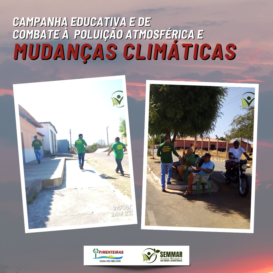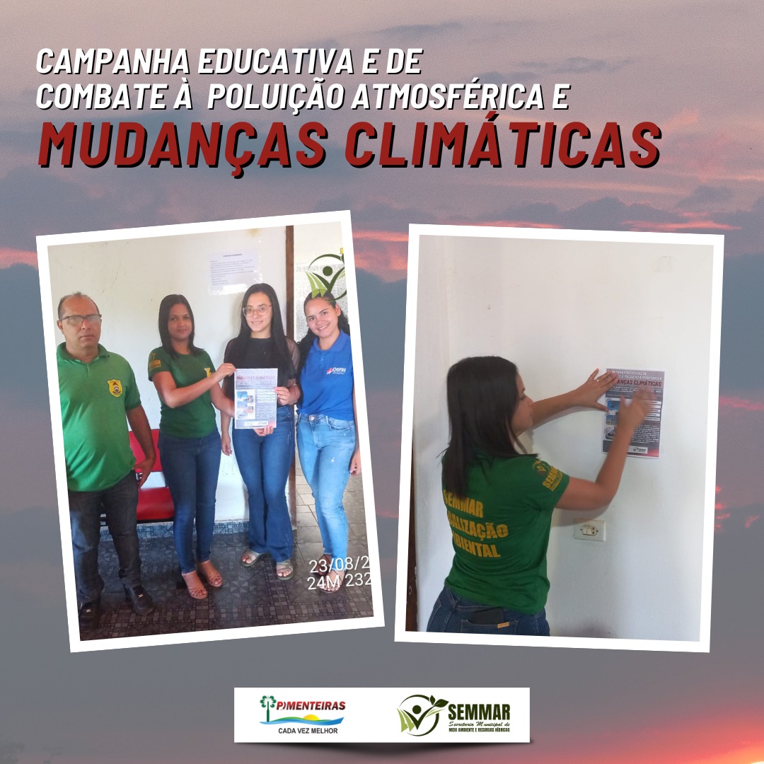 Data: 24/08/2023O município de Pimenteiras, através da Secretaria Municipal de Meio Ambiente e Recursos Hídricos-SEMMAR, iniciou nessa quarta-feira (23/08) a "Campanha Educativa e de Combate A Poluição Atmosférica E Mudanças Climáticas", foram realizadas ações de colagem de cartazes informativos nos órgãos públicos do município, destacando as principais causam e consequências da poluição atmosférica. Já nessa quinta-feira (24/08) foi dado continuidade a campanha com panfletagem nas ruas da cidade.