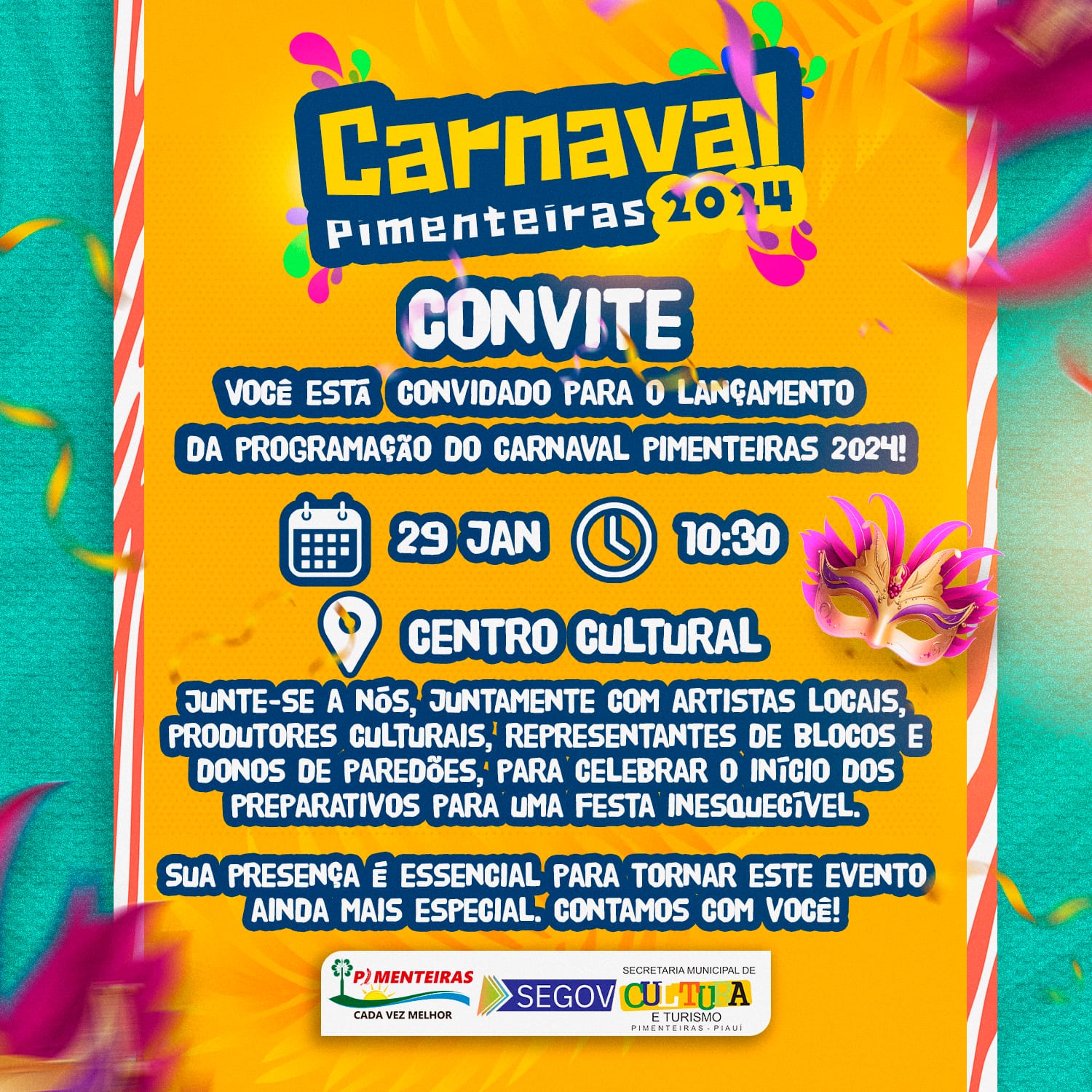 É uma honra convidar toda a população para o lançamento da programação do Carnaval 2024: