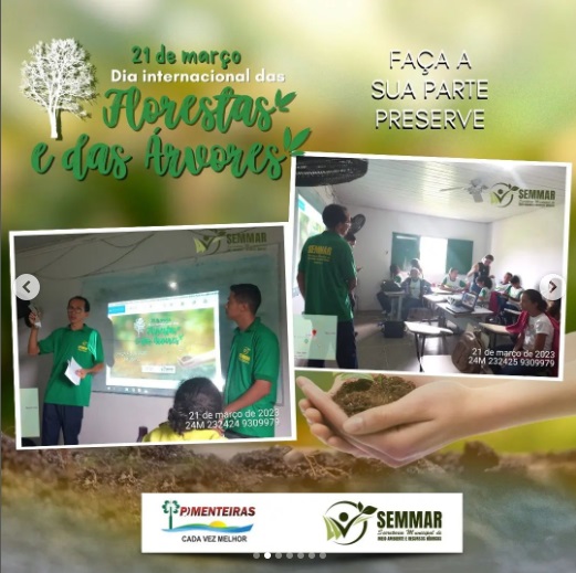O dia ainda foi para celebrar a festa anual nas árvores, que aborda a importância das árvores e sua função para qualidade de vida. Diante disso, a Prefeitura Municipal de Pimenteiras, através da Secretaria Municipal Ambiental e Recursos Hídricos (SEMMAR) realizou na terça-feira (21/03), uma série de atividades.