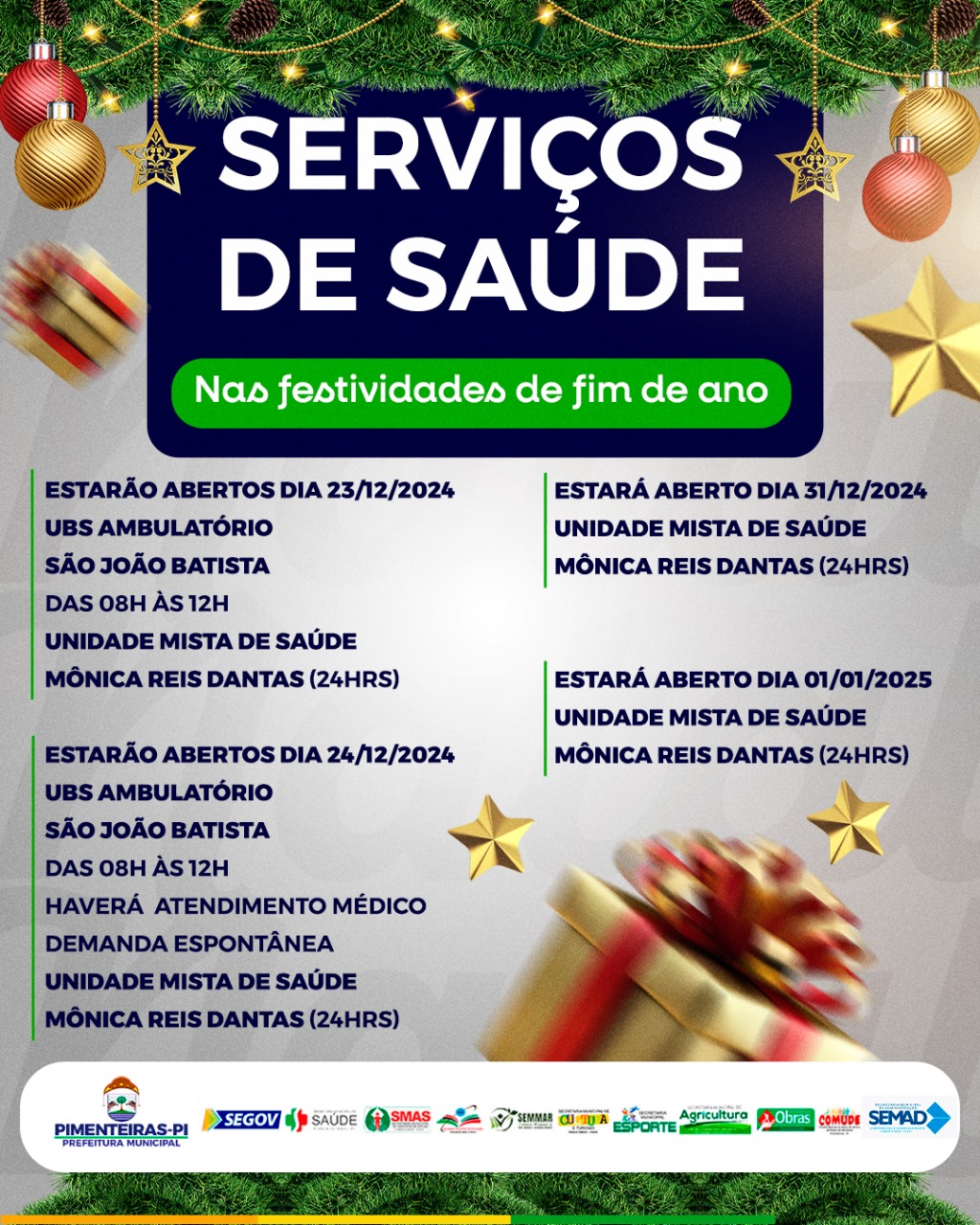 Não importa a data, a saúde de Pimenteiras não para. Estamos sempre aqui para garantir o cuidado e bem-estar de todos.