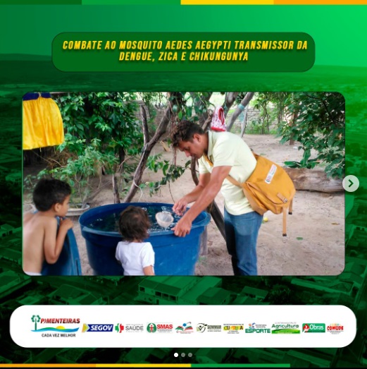 Data: 31/03/2023Hoje (31/03), os agentes de endemias estiveram nas localidades de Sítio das Onças e Curral de Pedras, para orientar e conscientizar a população no combate ao mosquito Aedes aegypti, transmissor da dengue, zika e chikungunya.